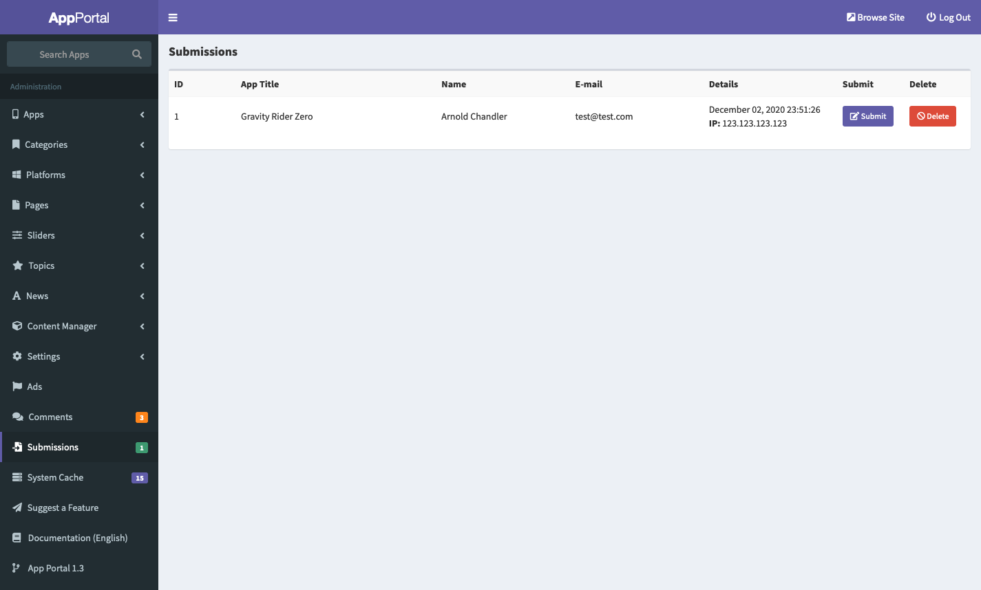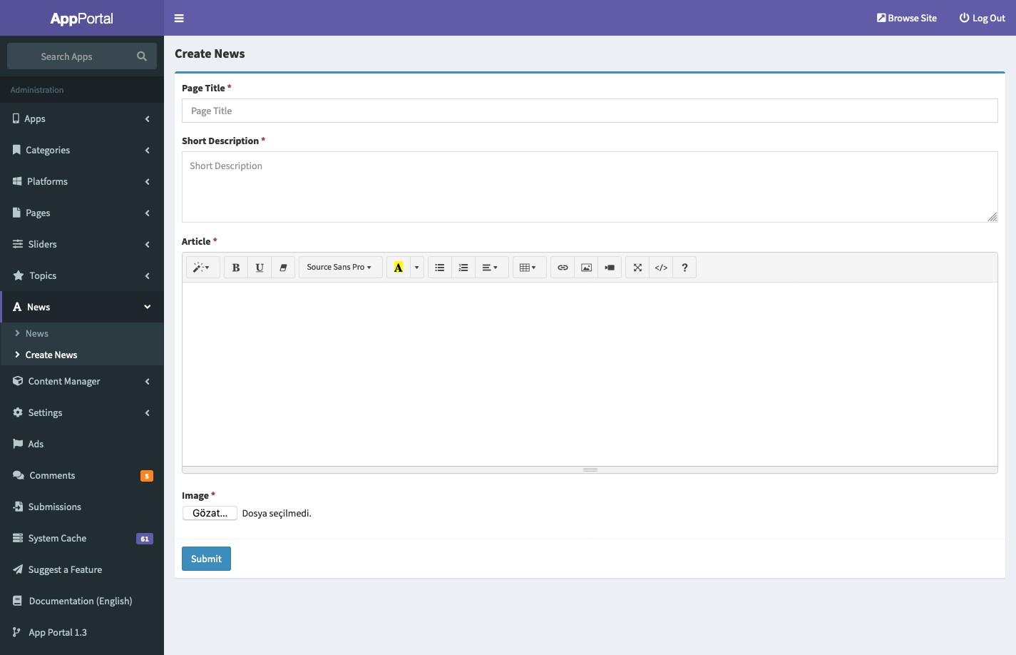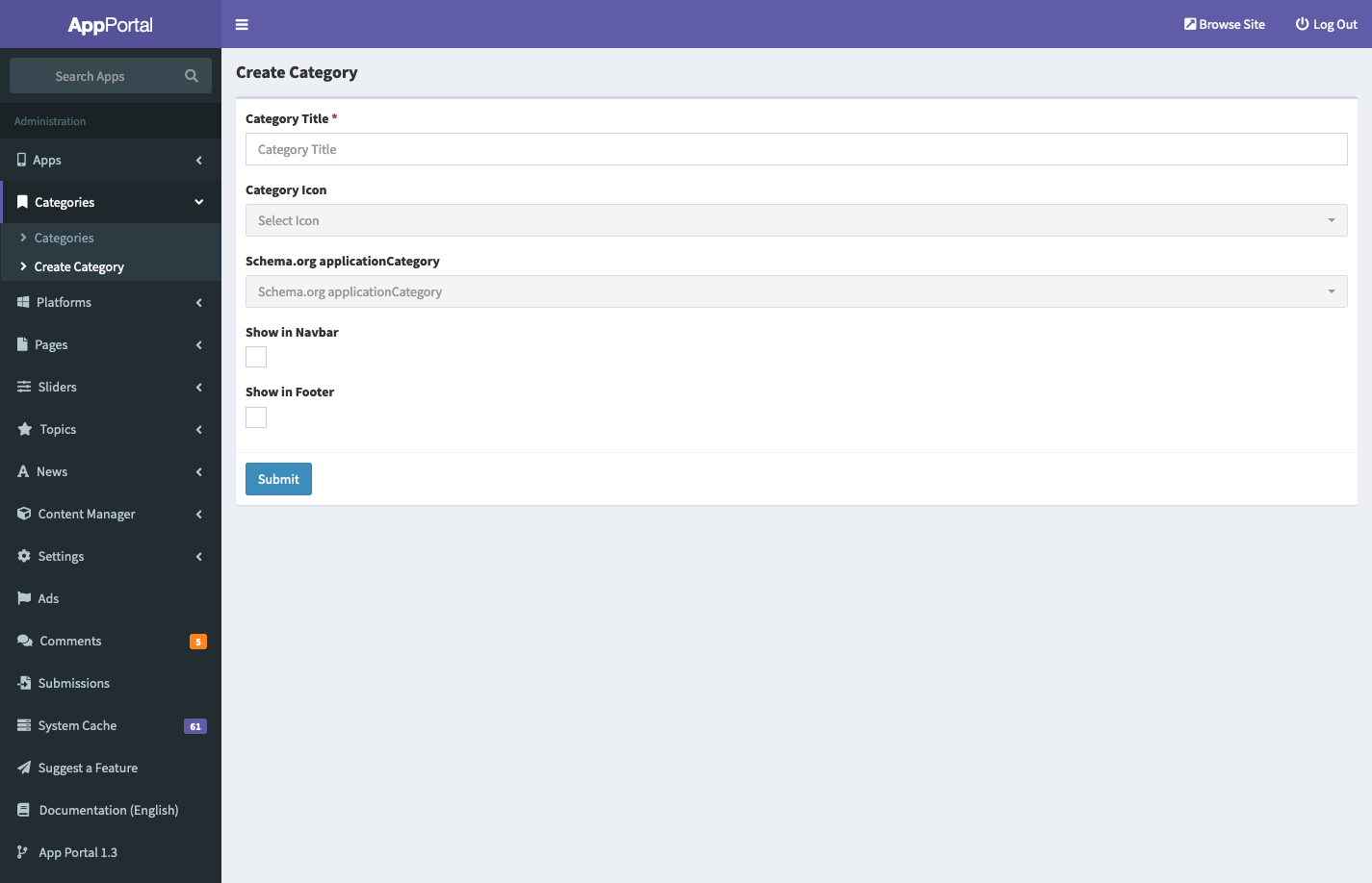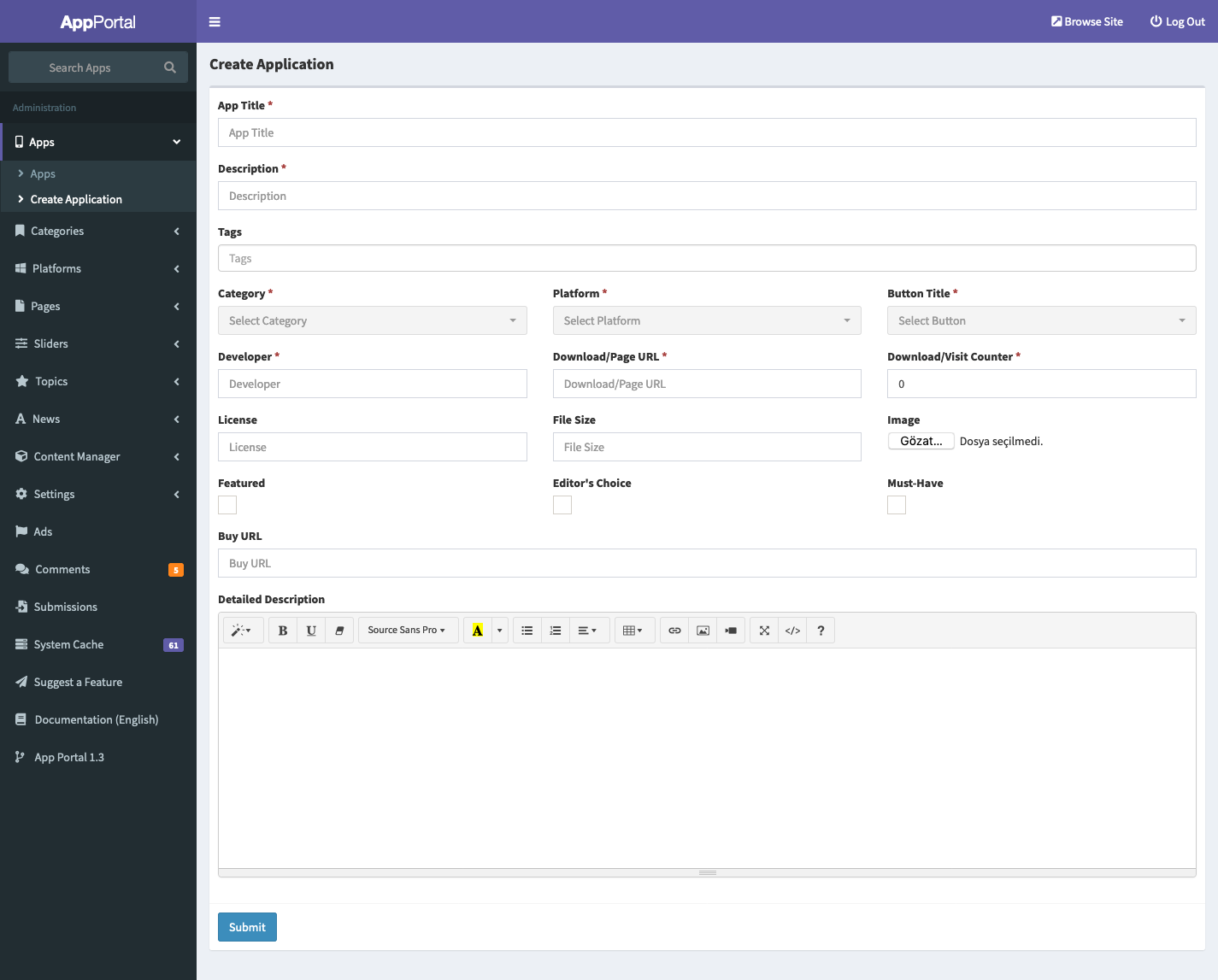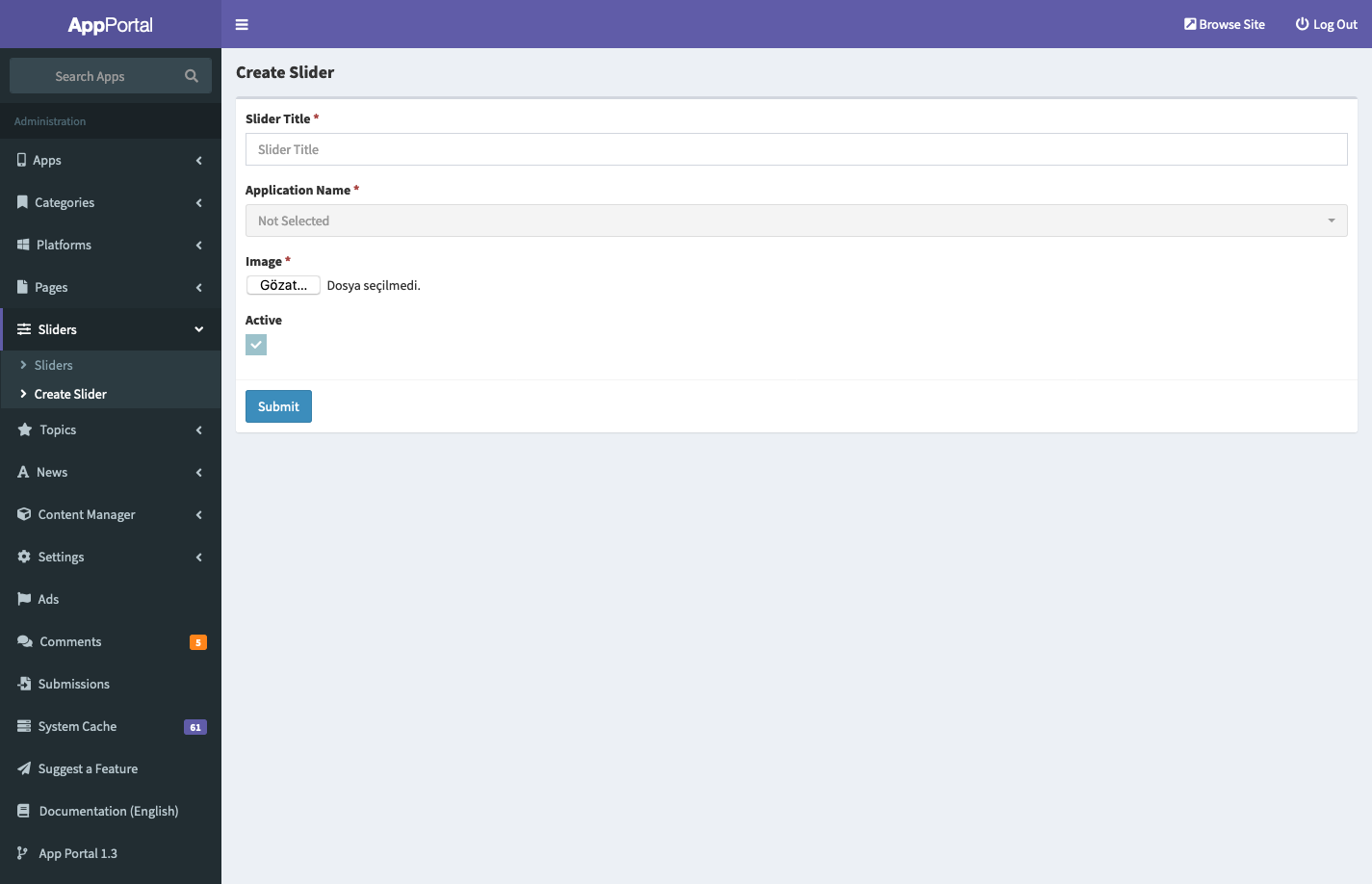 Enable App Submission Form: If selected, a link to application submission form will be displayed