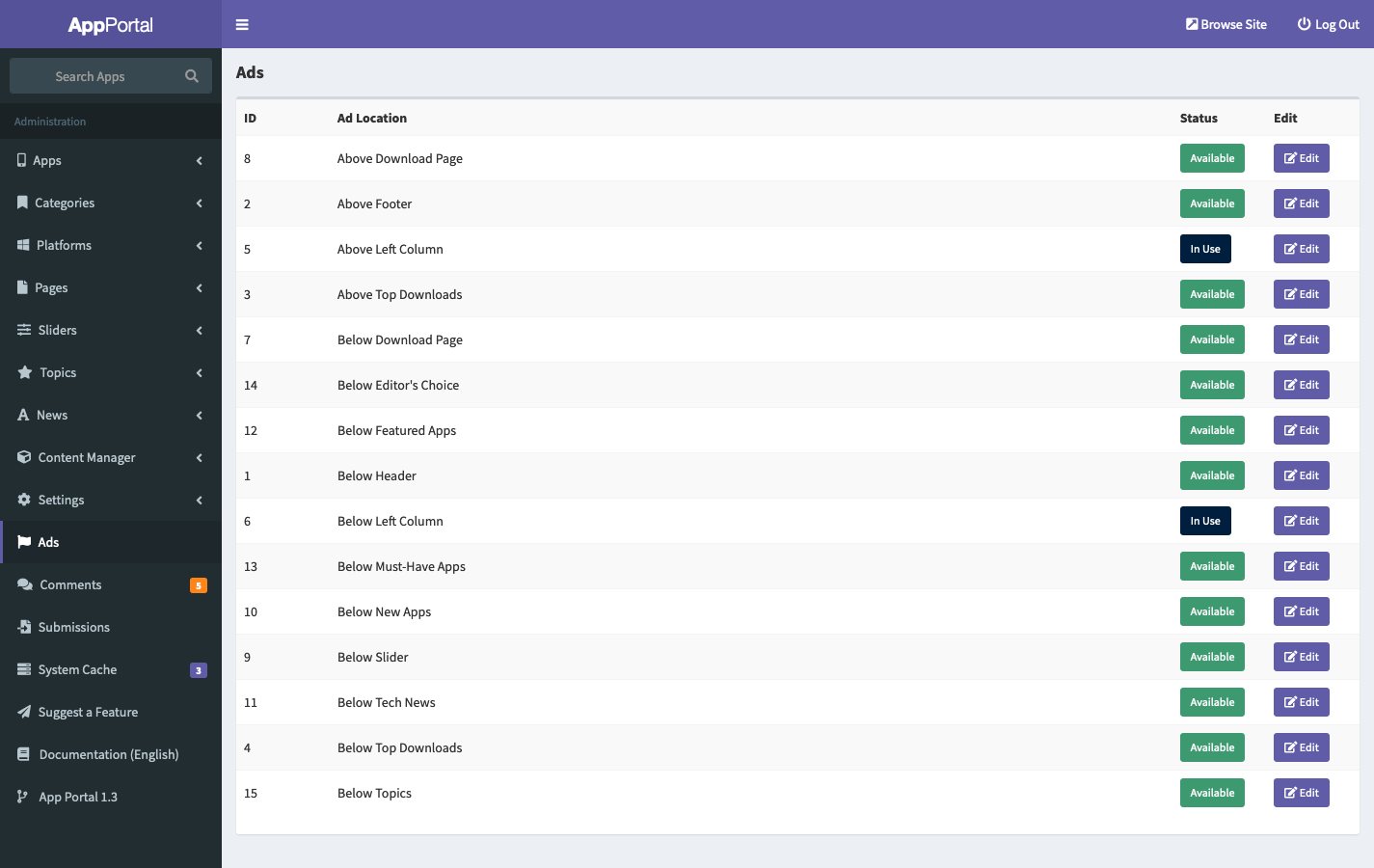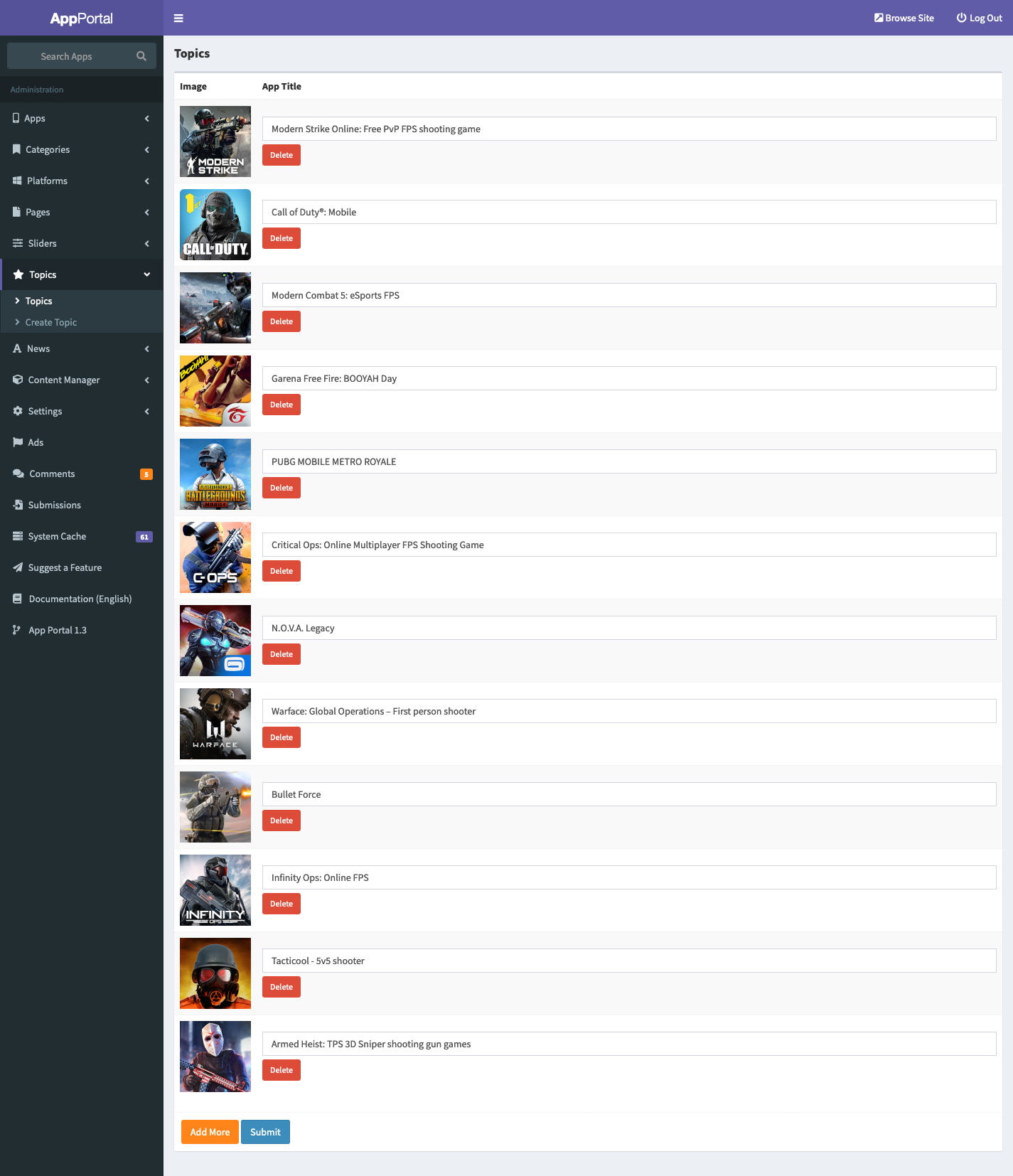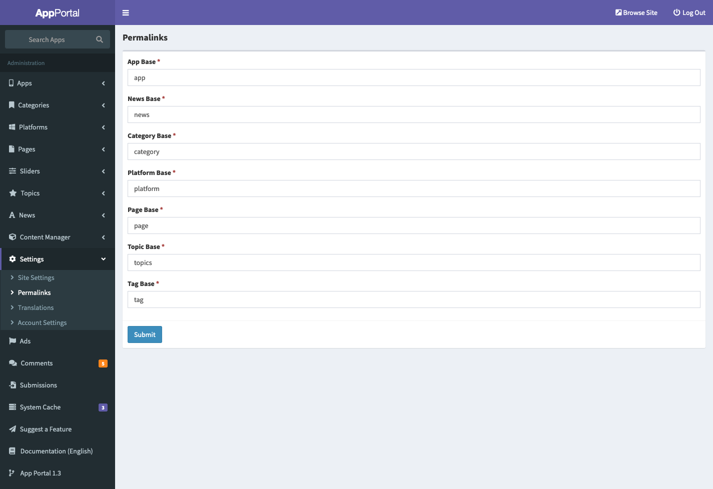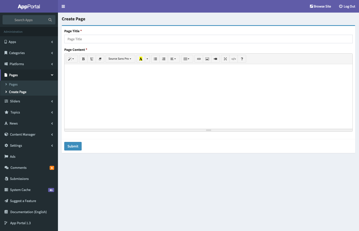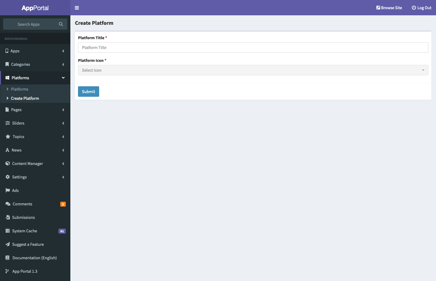 Enable App Submission Form: If selected, a link to application submission form will be displayed