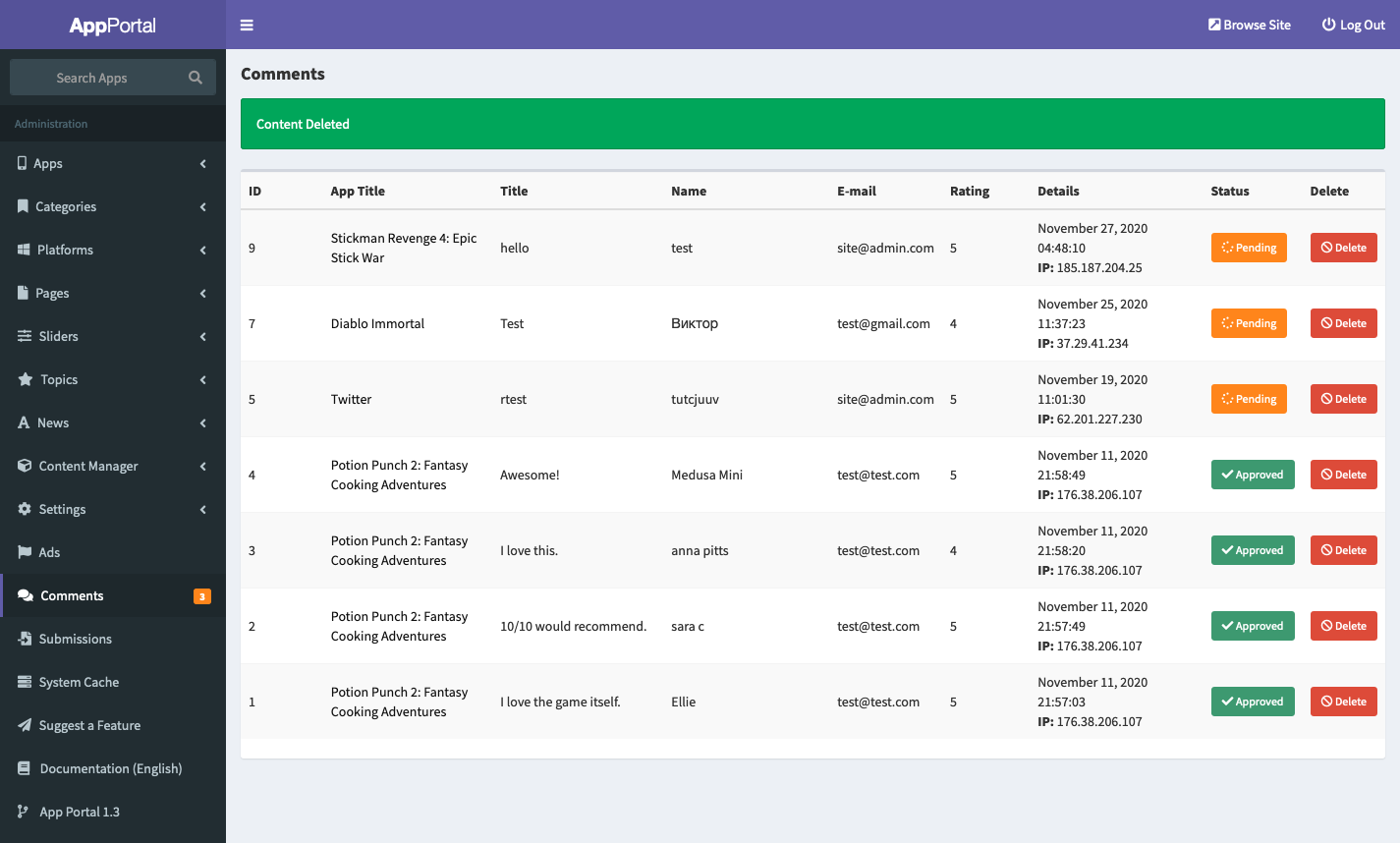 To approve a comment, click the Pending button, then in the popup window, review comment and click Approve or Cancel button.