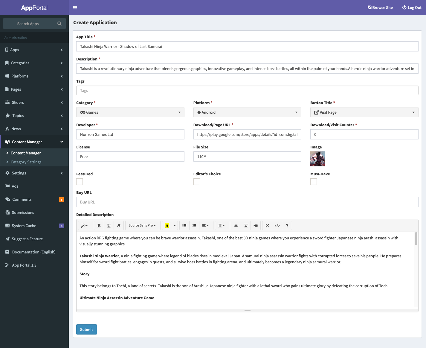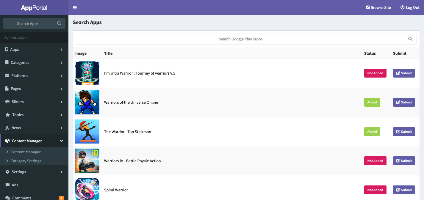 Auto Content Submission from Google Play Store Here you can enable and disable auto application